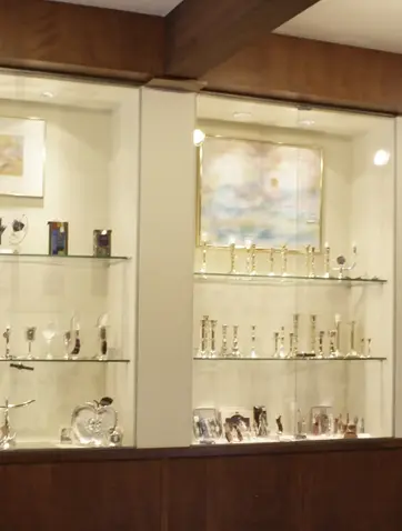 At the heart of Temple of Aaron, the sanctuary rises in sacred symmetry, its wooden beams reaching heavenward beneath a star-crowned arch. Twin pillars echo Solomon’s throne, while wood and brick recall ancient hands that built without metal, in peace. Ten stained glass windows glow with the journey of a Jewish soul—from birth to immortality—each pane a prayer in color and light. The Leifman Family Chapel opens to the Mississippi’s stillness, where daily prayers and life’s sacred moments find a home. In the Memorial Alcove, a single flame honors memory with quiet grace. And across our walls, treasures gathered by Rabbi Bernard S. and Leah Raskas tell a story of faith shaped by the hands of the world.